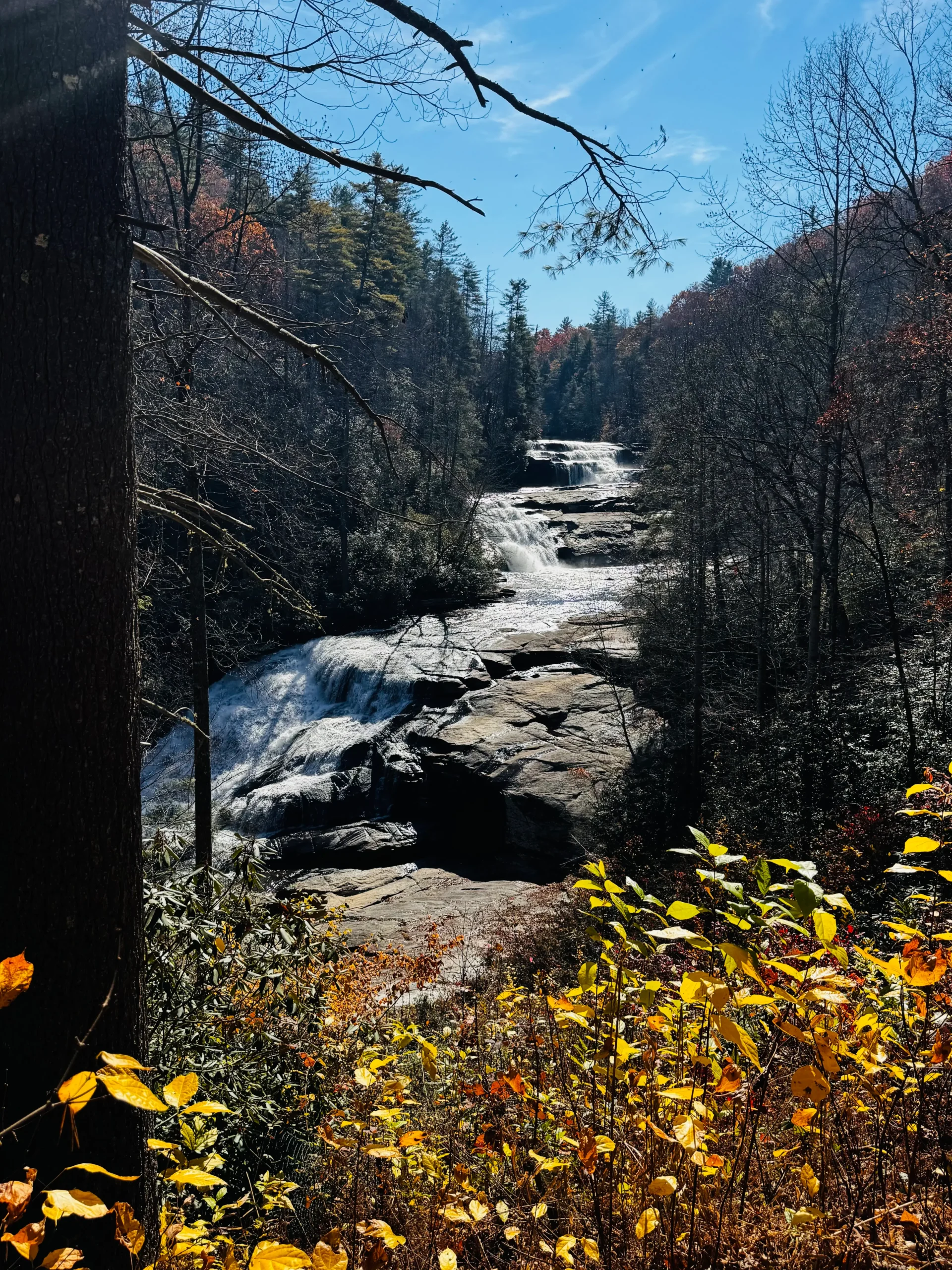 High Falls (Dupont): The tallest waterfall in DuPont Forest, this 120-foot granite cascade is just a half-mile walk from the Visitor Center and offers both overlook and base access.