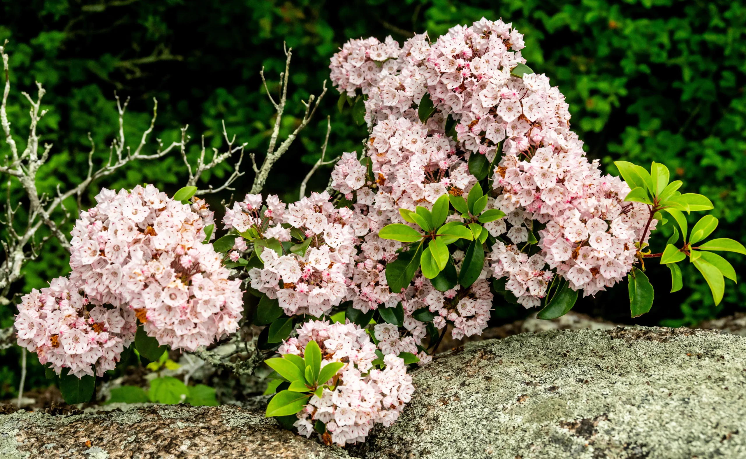 Mountain Laurels (Flora): Blooming pink and white shrubs that brighten the mountains each spring.